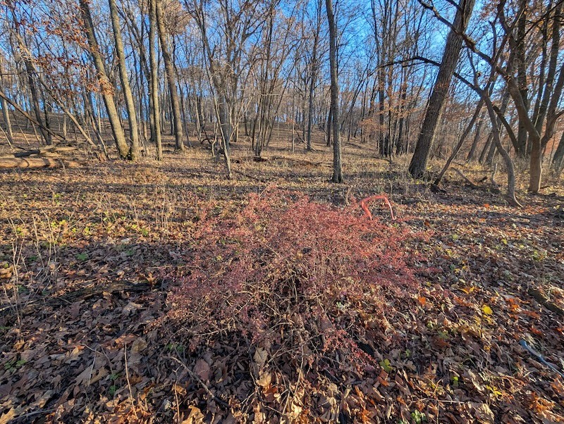 On a few hilltops where my parents have restored prairies, they use fire to keep the native plants healthy and the invasive species out. Historically, low-intensity fires might have kept this woodland healthy, too. In the absence of widespread fire, some folks have found good success at removing barberry by blasting them with the focused fire of a propane torch.